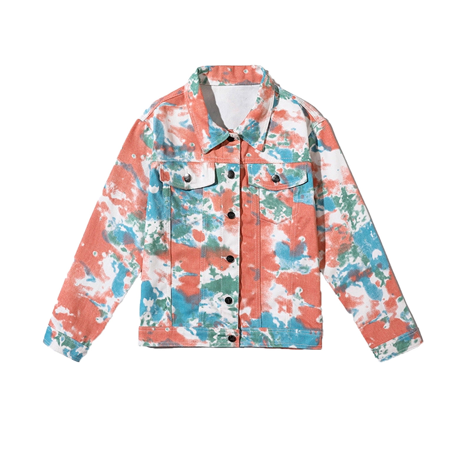 Men S Denim Long Sleeve Jacket Fall Colorful Tie Dye Stand Up Collar Single Breast Cardigan Jeans Shirt Coat 3x Large Pink Walmart Com